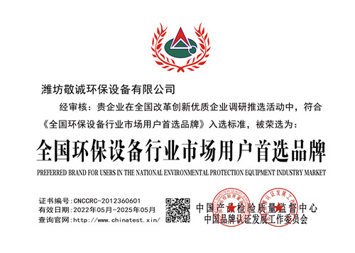 全國環保設備行業市場用戶首選品牌