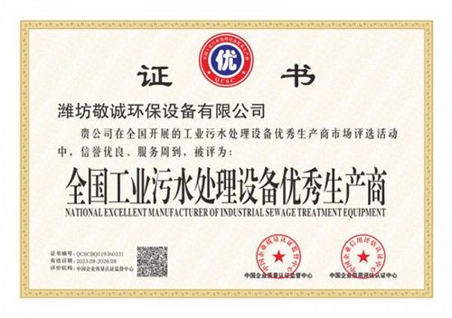 全國工業污水處理設備優秀生產商